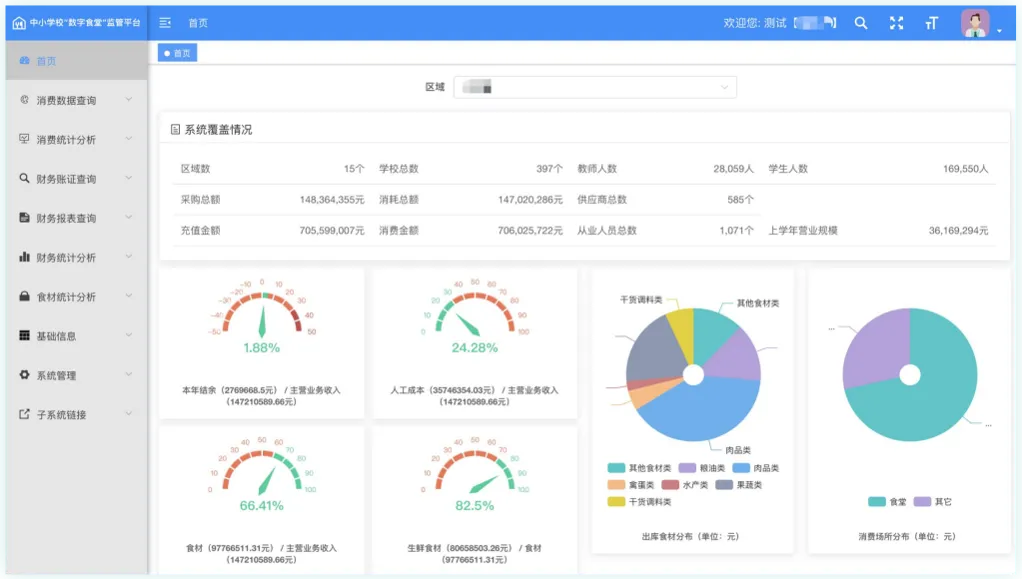 食材管理系统建立供应商准入、食材质量监测、智能称重的全链条管控,源头防范利益输送。